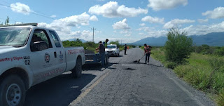 Aunque es responsabilidad estatal, los municipios de Lampazos, Bustamante y Villaldama le entramos al bacheo de esta importante vía.